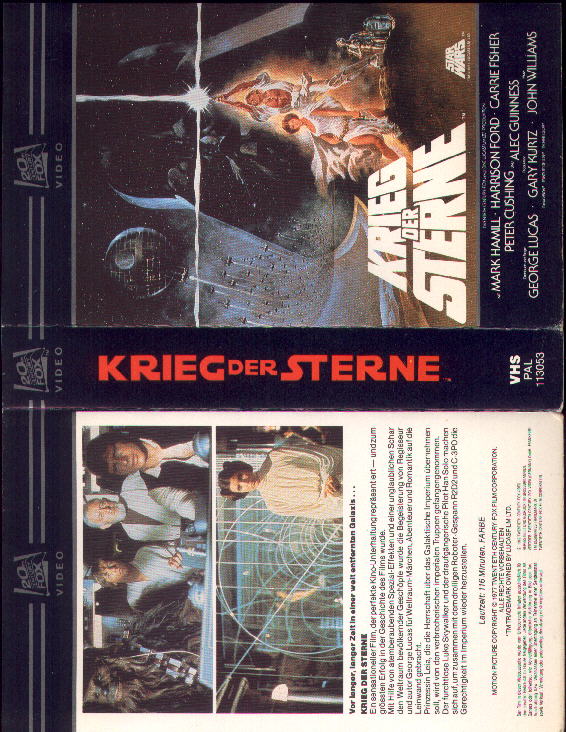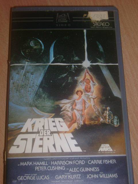 Krieg der sterne vhs box. Mark Hamill Harrison Ford Carrie Fisher Sir Alec Guinness Peter Cushing Anthony Daniels Kenny Baker Peter Mayhew Denis Lawson David Prowse Phil Brown Sheragh Fraser Jack Purvis John Williams Mark Hamill Harrison Ford Gary Kurtz John Dykstra Marcia Lucas Gilbert Taylor John Mollo John Barry Don MacDougall George Lucas Norman Reynolds John. Plus Ewoks in einem grossen Pappschuber. 4500 72805 Lichtenstein.