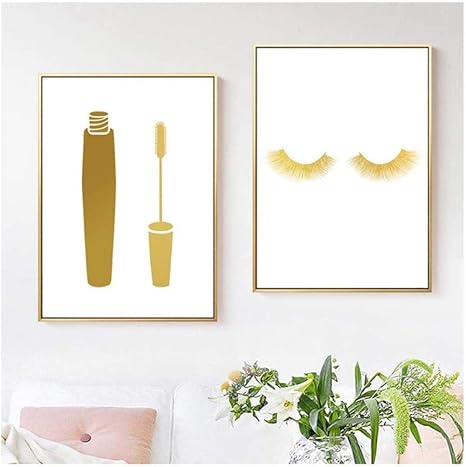 Gold Mascara Wimpern Wandkunst Leinwand Malerei Nordic Poster Und Drucke Wandbilder Fur Badezimmer Beauty Salon Girly Wall 50x70cmx2 Rahmenlos Amazon De Kuche Haushalt