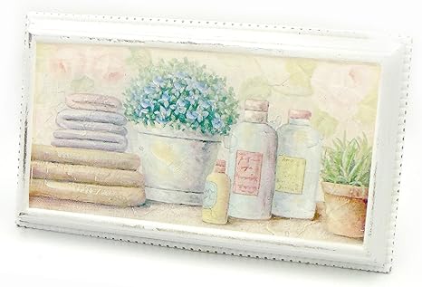 Cdcasa Bild Bad Gemalde Fur Badezimmer Holzbild Badezimmer Wandbild Deko Bild Mit Rahmen Provencal Shabby Chic Badezimmer 22x38 Mdf Amazon De Kuche Haushalt