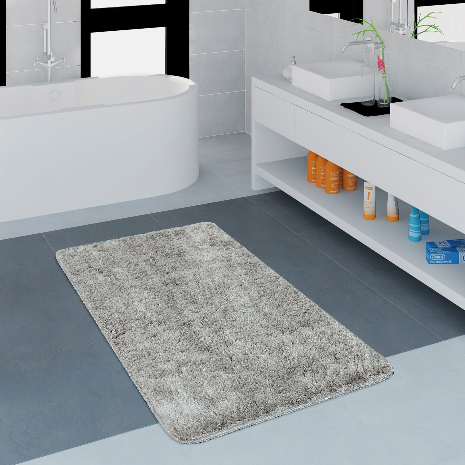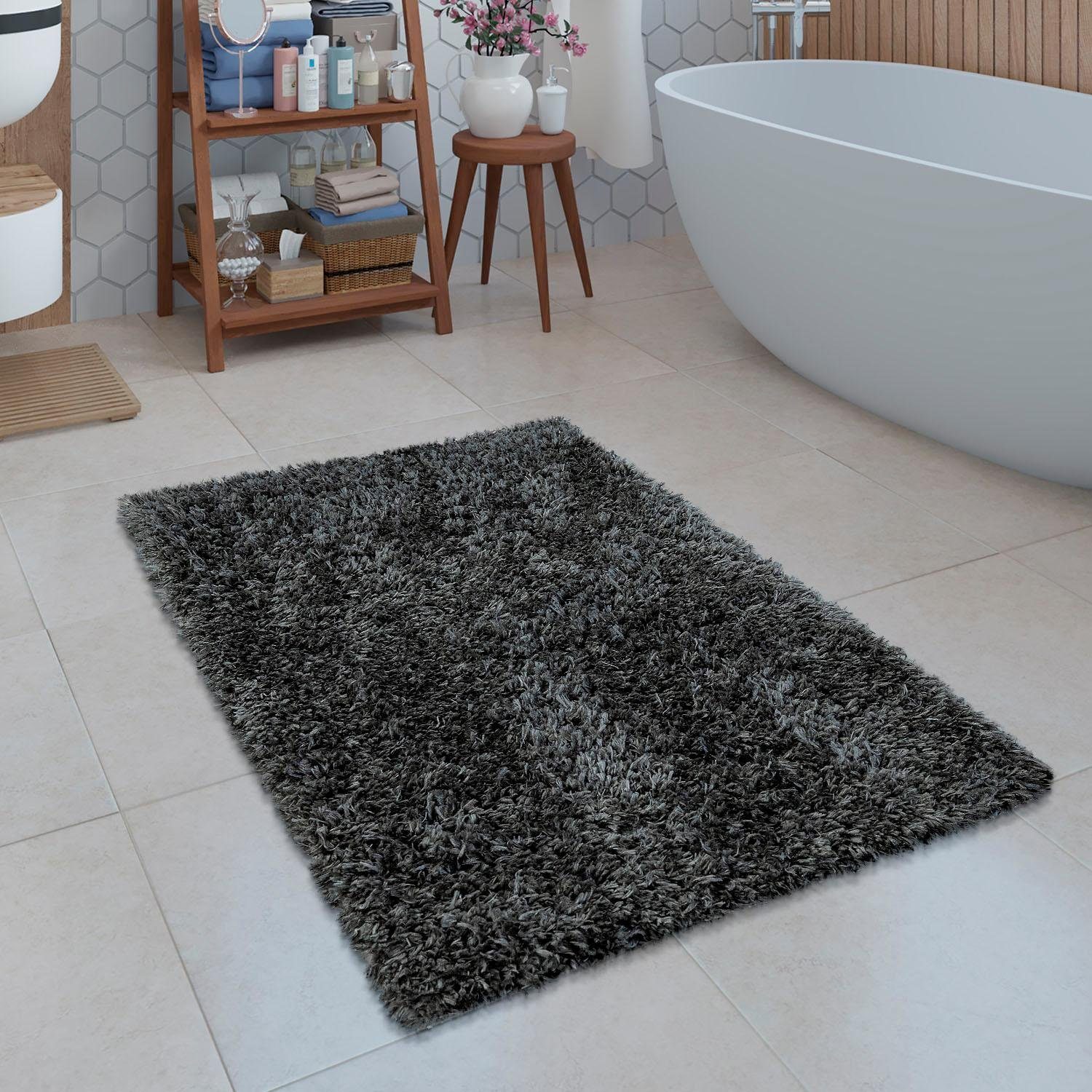Moderner Badezimmer Teppich Einfarbig Hochflor Badteppich Rutschfest In Grau Kaufen Bei Hood De