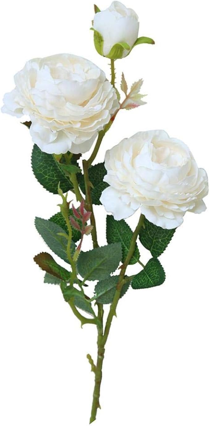 Tagether Rose Unechte Deko Kunstblumen Gefalschte Blumen Seidenrosen Mit Glas Vase Plastik 3 Kopfe Braut Hochzeitsblumenstrauss Fur Haus Garten Party Blumenschmuck Weiss Amazon De Bekleidung