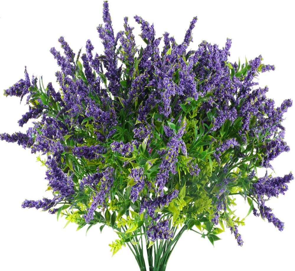 Huaesin 4pcs Kunstliche Lavendel Blumen Pflanzen Kunstblumen Lila Kunstpflanze Wetterfest Plastik Pflanze Kunstliche Grunpflanzen Fur Fruhling Balkon Draussen Garten Hochzeit Vase Dekoration Blumen Kuche Haushalt Wohnen